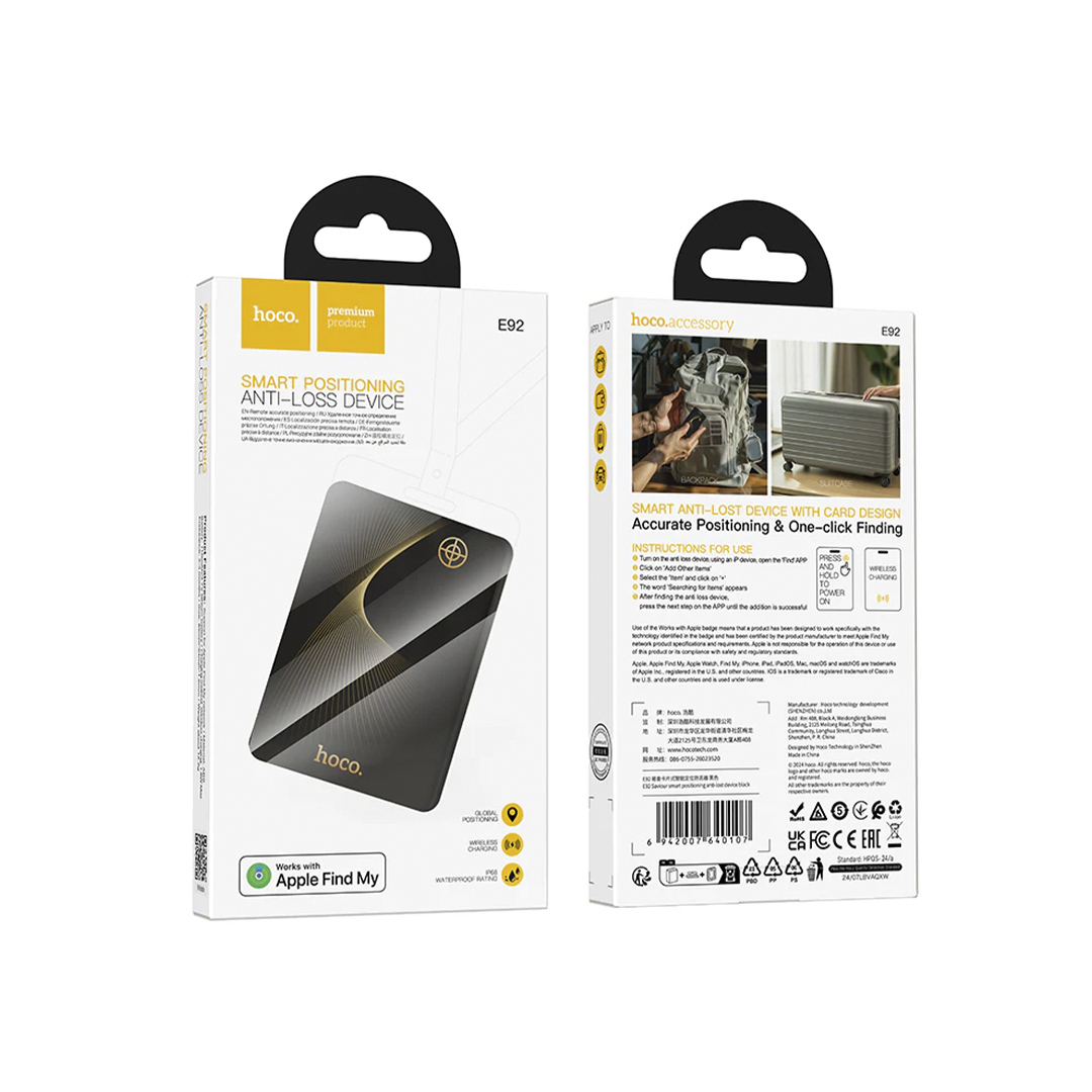 HOCO E91 je visokokvalitetan tracker za praćenje lokacije raznih stvari. Sa ovim visoko preciznim gadžetom, vaše dragocenosti će uvek biti pod pouzdanom kontrolom. Zahvaljujući prisustvu GPS sistema, možete pratiti željeni objekat bilo gde u svetu. CR2032 baterija obezbeđuje 9 do 12 meseci neprekidnog rada uređaja za pretragu. Ne morate da instalirate nikakve dodatne programe da biste koristili uređaj za praćenje. Podrška Apple Find Mi omogućava aktiviranje zvučnog signala za traženje gadžeta u radijusu do 3 metra i određivanje njegove geolokacije. E91 je kompaktne veličine i praktično ne zauzima nikakav prostor. Traker se može instalirati na ključeve i mobilne uređaje; staviti u torbicu, torbu ili džep.