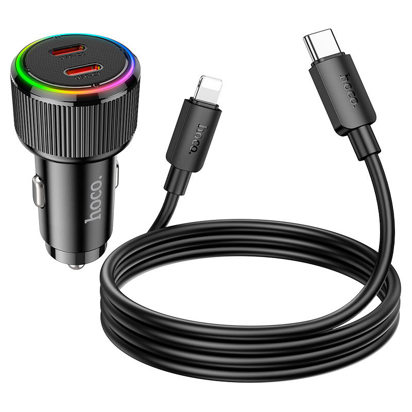 NZ14B Guerrero, auto punjač sa jednim Tipe-C 30V i jednim Tipe-C 20V portovima, podržava protokole brzog punjenja, setovi sa kablom od 1m za Lightning do Tipe-C.