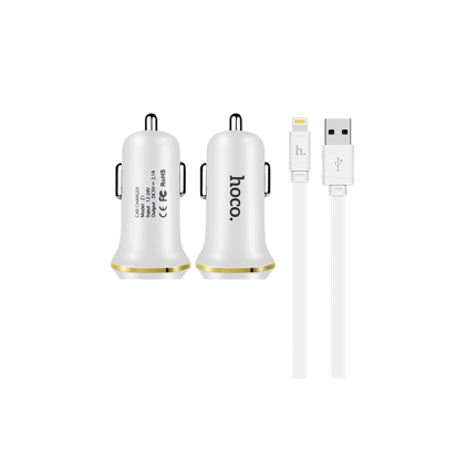 Auto punjac HOCO Z1 dual USB+iPhone Lightning kabal beli