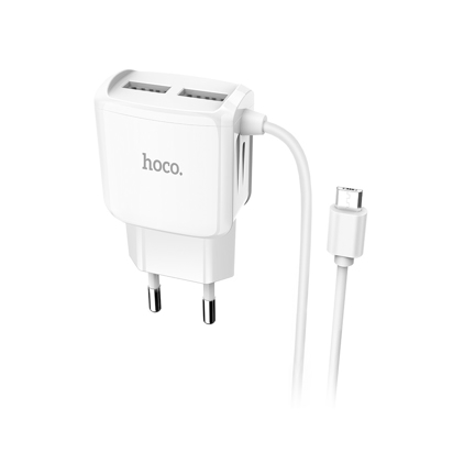 C59A adapter za punjenje, EU priključak, sa dvostrukim USB priključkom i ugrađenom žicom za Micro-USB uređaje Ulaz: AC100-240V, 50 / 60Hz, 0,3A
