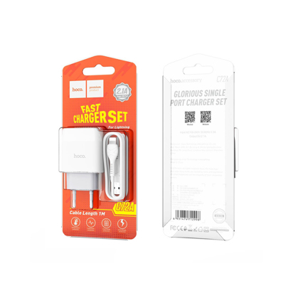 C72A adapter za punjenje, EU priključak, sa kablom Lightning Ulaz: AC100-240V, 50 / 60Hz, 0,3A