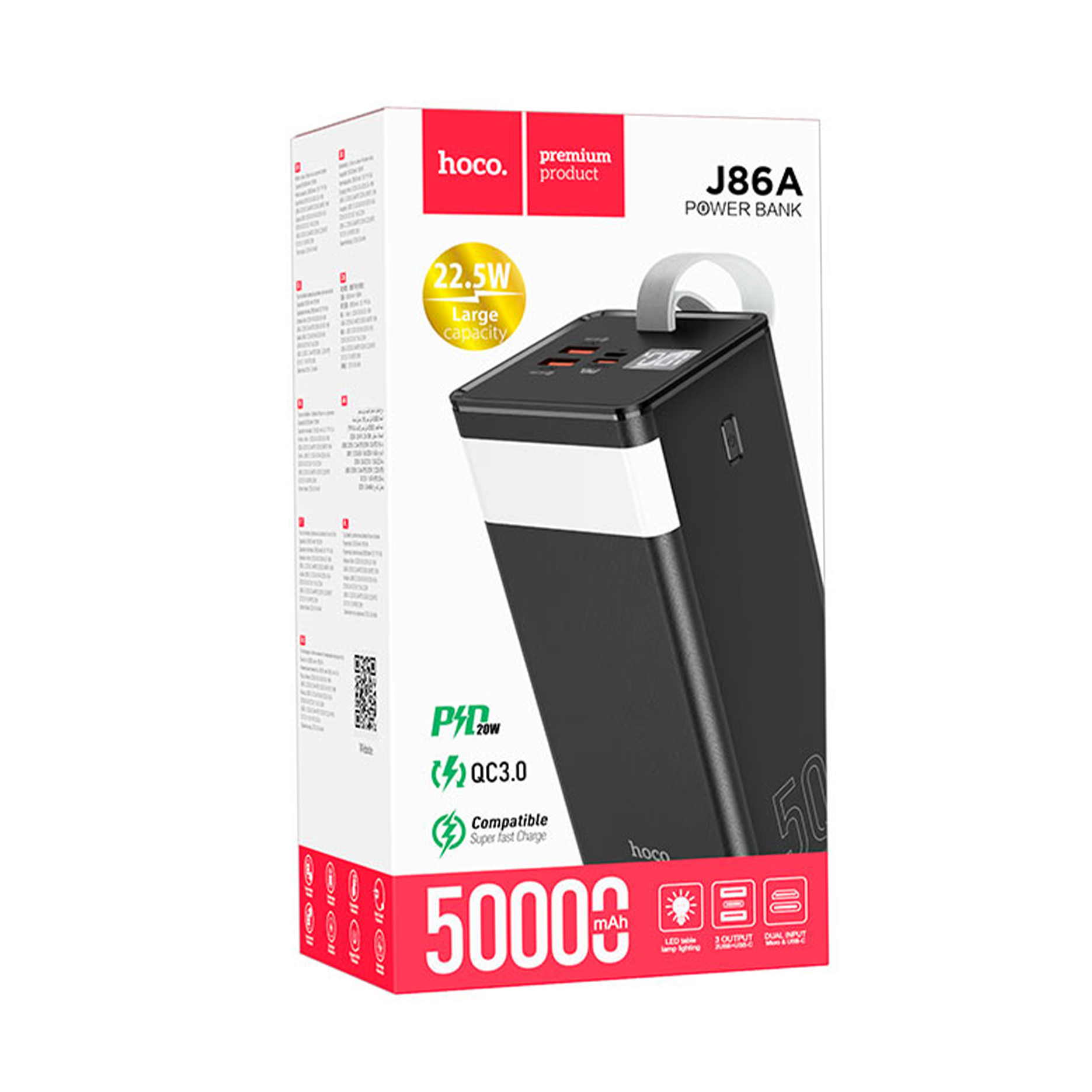Hoco J86A Power Bank velikog kapaciteta je opremljen sa kapacitetom od 50000mAh, pružajući dovoljno snage za vaše mobilne uređaje, idealan za duga putovanja i produžene periode upotrebe.