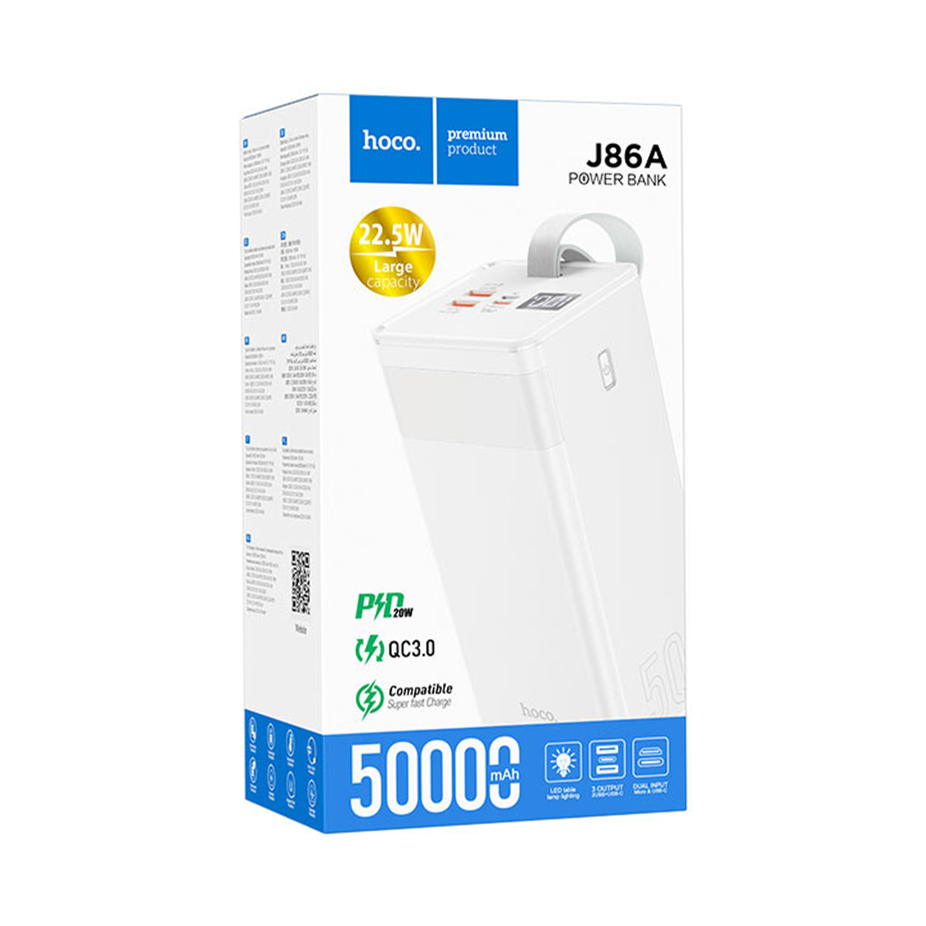 Hoco J86A Power Bank velikog kapaciteta je opremljen sa kapacitetom od 50000mAh, pružajući dovoljno snage za vaše mobilne uređaje, idealan za duga putovanja i produžene periode upotrebe.