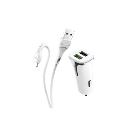Z31 auto punjač sa dvostrukim USB portom, sa Type-C kablom dužine 1m, višestrukim sigurnosnim krugovima Ulaz: DC12-24V