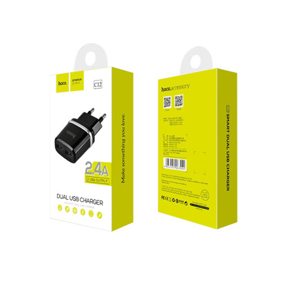 Kucni punjac HOCO C12 Smart dual USB crni