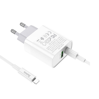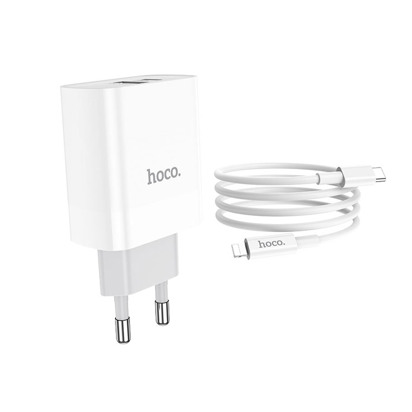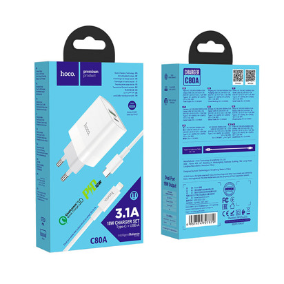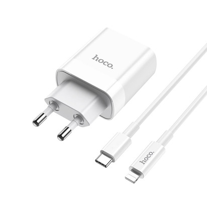 C80A Rapido PD + KC3.0 zidni punjač, USB / Type-C izlaz, EU utikač, set sa Type-C na Lightning kablom.