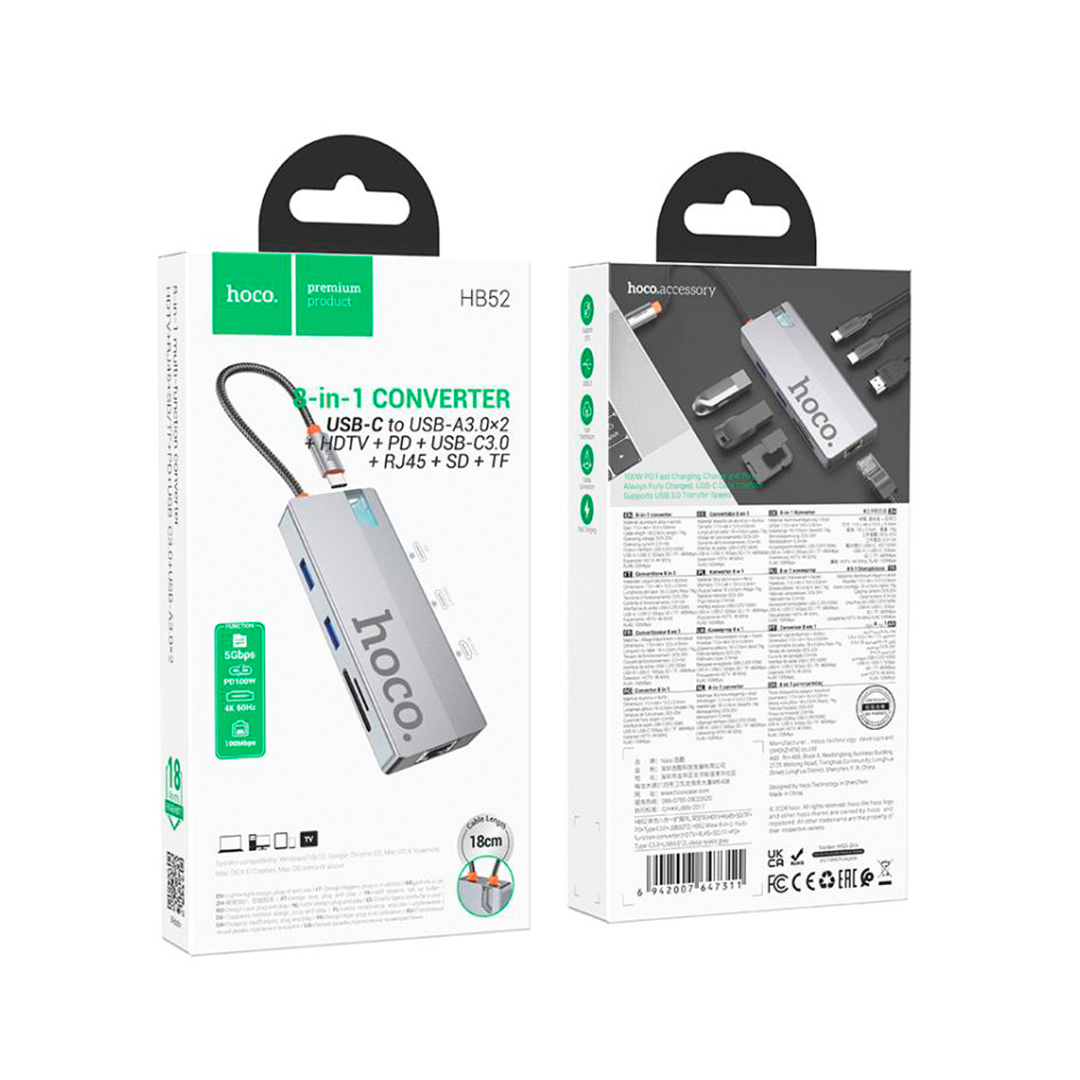 HB34 Easi Link Type-C Gigabitni mrežni adapter (Type-C na USB3.0*3 + RJ45) je kompaktni adapter koji vam omogućava da brzo i lako proširite funkcionalnost vašeg uređaja.